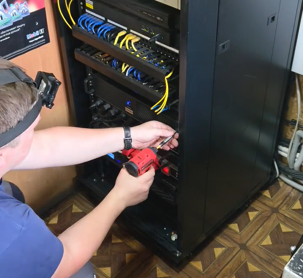 - Полностью разобрали 2 видеорегистратора, сервер СКУД, источник бесперебойного питания с аккумуляторами.