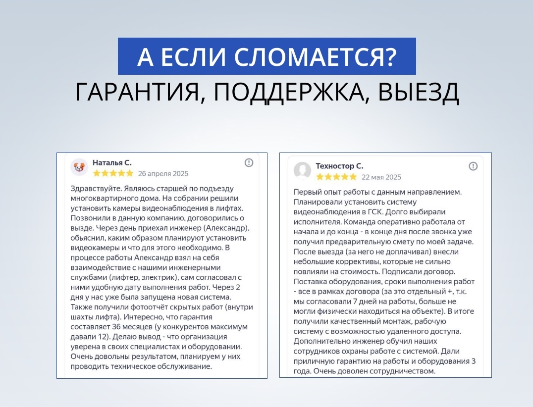 Мы понимаем, что безопасность — это не только про камеры и кабели. Это про уверенность. Поэтому отвечаем прямо:
